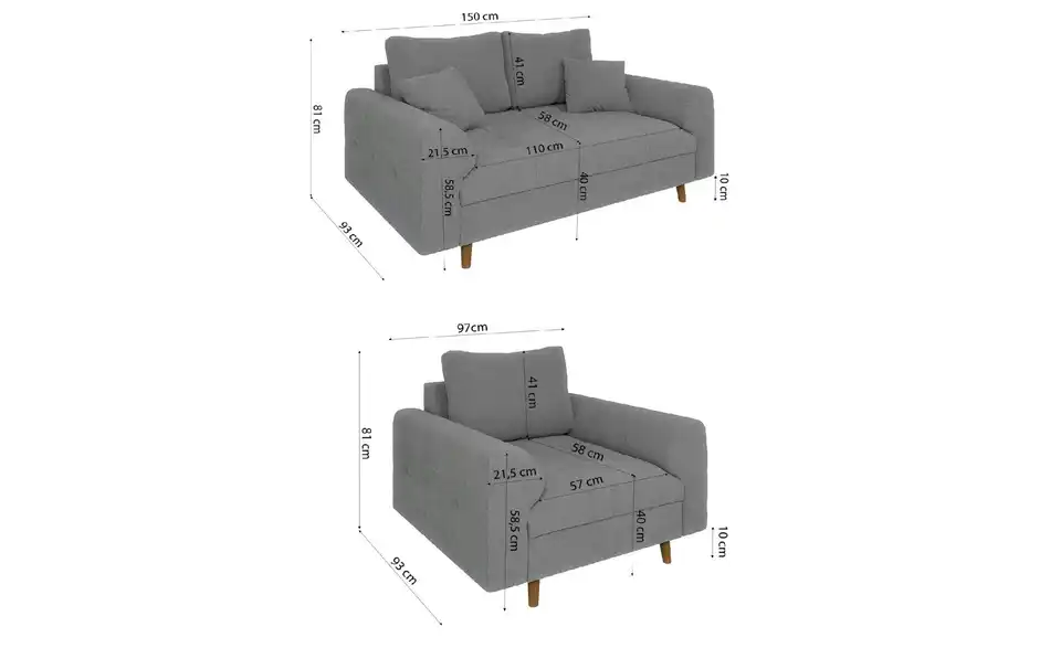 - Sofa 2-sitzig (BxHxT)150 x 93 x 81