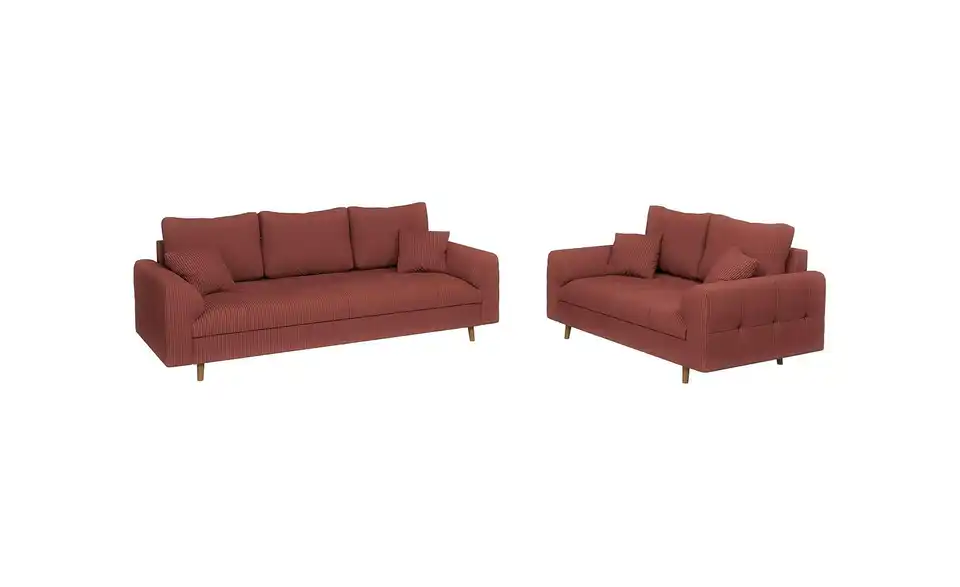 - Lieferumfang / mitgeliefertes Zubehör3-Sitzer Sofa, 2-Sitzer Sofa, Montagematerial, 4x Zierkissen