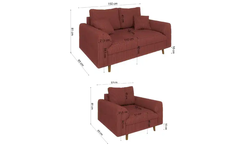 - Sofa 2-sitzig (BxHxT)150 x 93 x 81