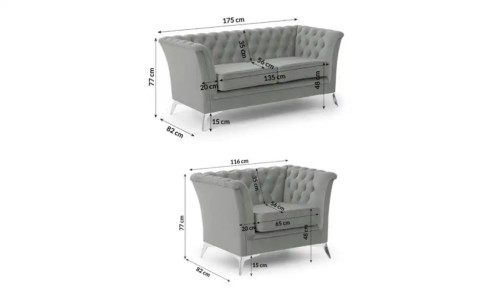 S-STYLE Chesterfield Polstergarnitur 2+1 Wilhelm