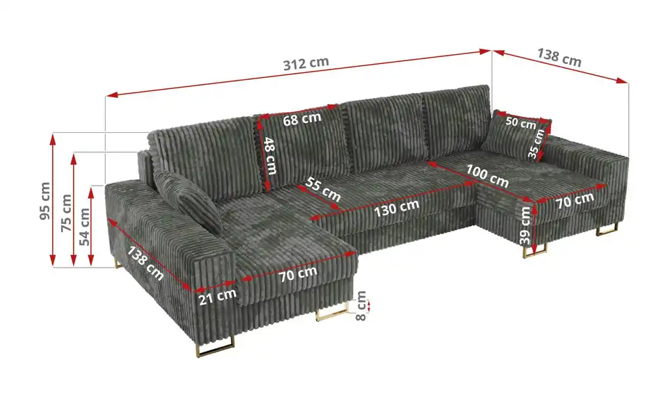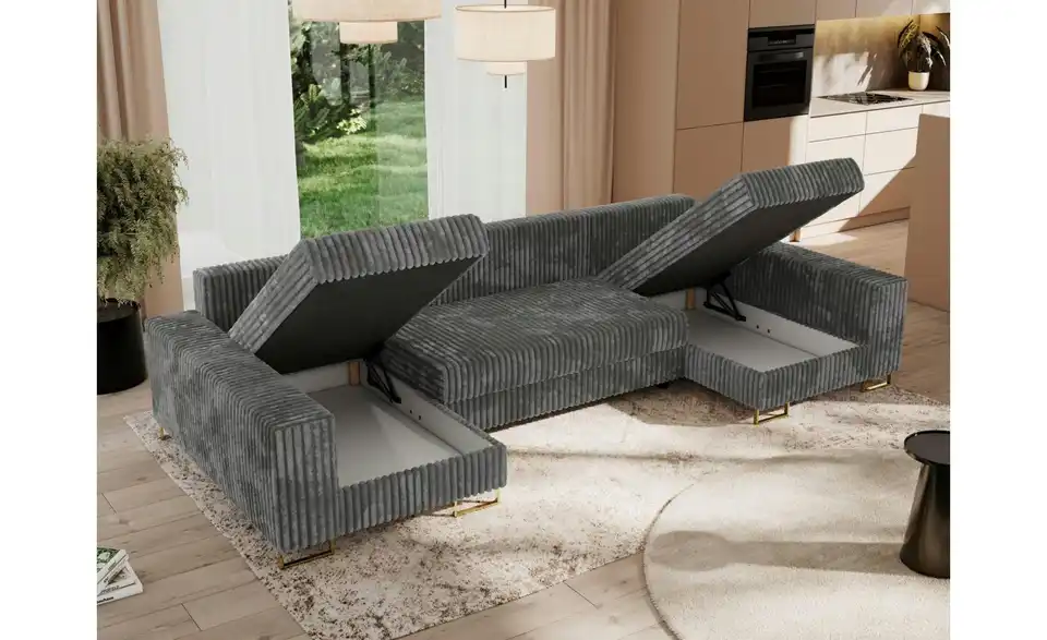 - AusführungWohnlandschaft Dunkelgrau Cord