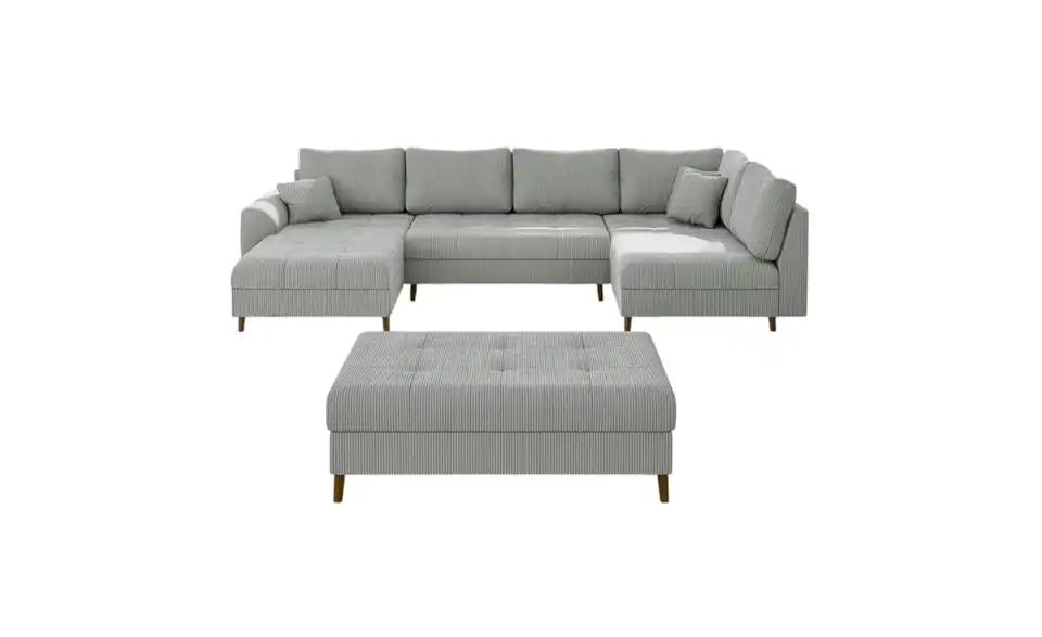 - Lieferumfang / mitgeliefertes ZubehörWohnlandschaft, Hocker, Montagematerial, 3 x Zierkissen
