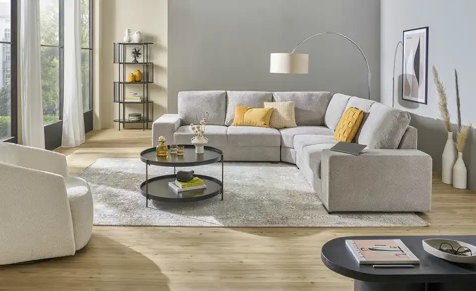 Die allerbesten Voraussetzungen zum komfortablen Sitzen und Ausruhen bietet dieses Ecksofa. Das Modell Renée lässt sich dank des echt bezogenen Rückens frei im Raum platzieren und hat eine bequeme Polsterung aus Schaumstoff für das maximale Wohlfühlerlebnis. Das Gestell aus Massivholz ist die Basis des Sitzmöbels. Das Sofa begeistert mit Rückenkissen als Zubehör. Diese Couch wird ganz schnell zu einer wahren Oase der Gemütlichkeit, welche Ihrem Zuhause auf praktische und attraktive Art und Weise den letzten Schliff verleiht.Lieferung & Versand