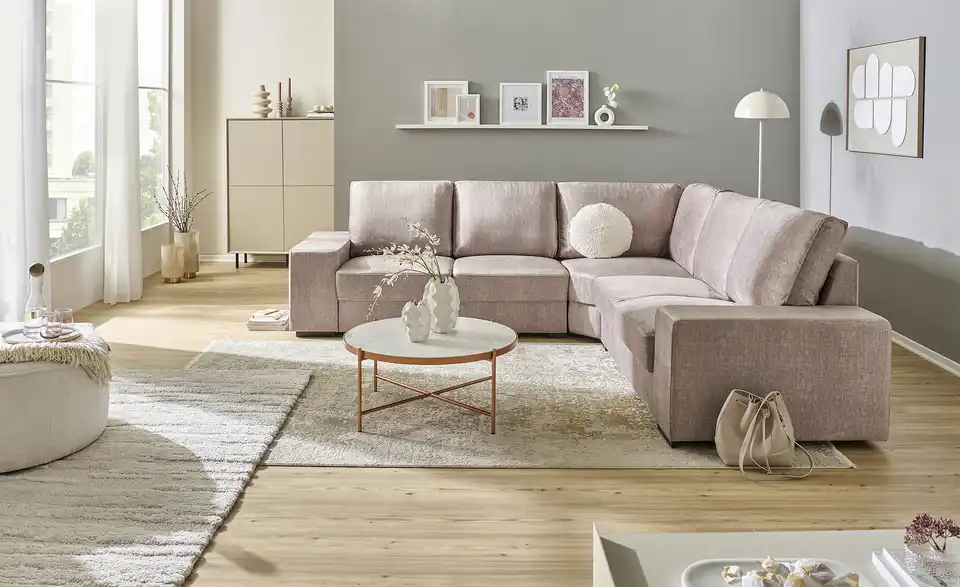 Die allerbesten Voraussetzungen zum komfortablen Sitzen und Ausruhen bietet dieses Ecksofa. Das Modell Renée lässt sich dank des echt bezogenen Rückens frei im Raum platzieren und hat eine bequeme Polsterung aus Schaumstoff für das maximale Wohlfühlerlebnis. Das Gestell aus Massivholz ist die Basis des Sitzmöbels. Das Sofa begeistert mit Rückenkissen als Zubehör. Diese Couch wird ganz schnell zu einer wahren Oase der Gemütlichkeit, welche Ihrem Zuhause auf praktische und attraktive Art und Weise den letzten Schliff verleiht.Lieferung & Versand