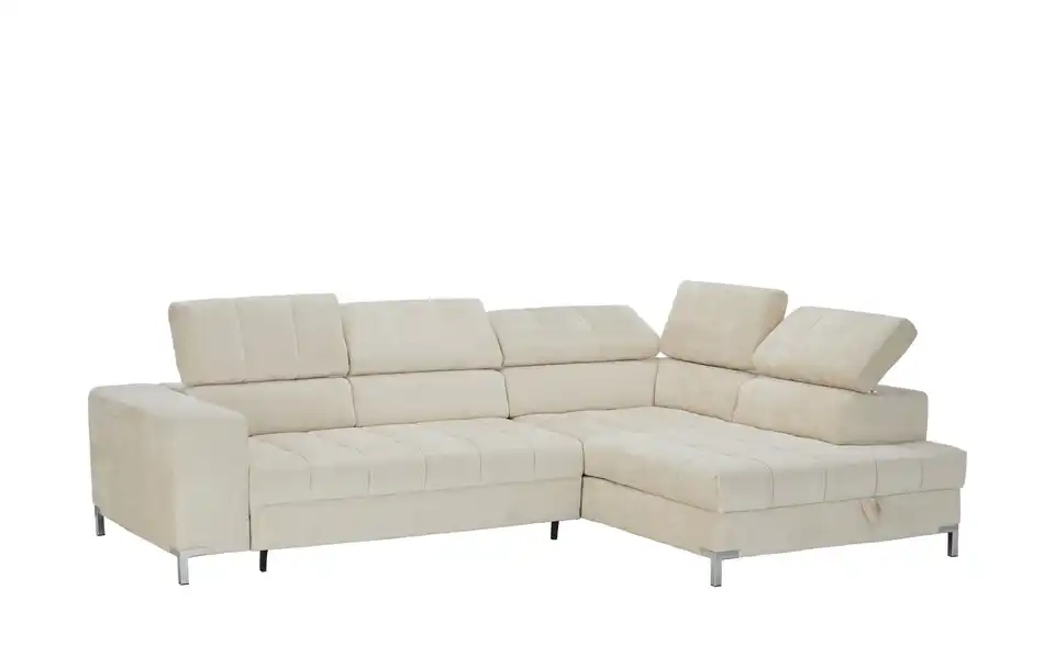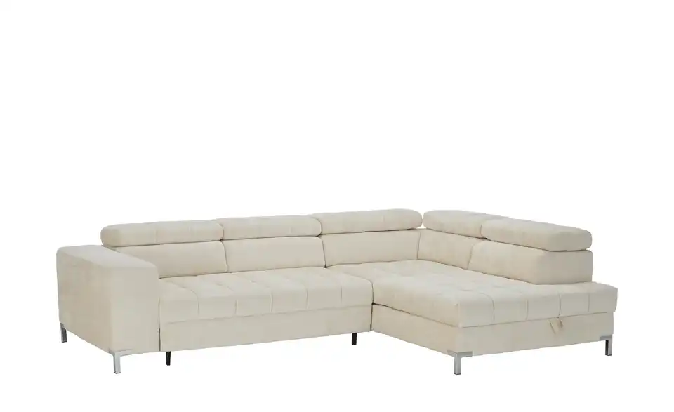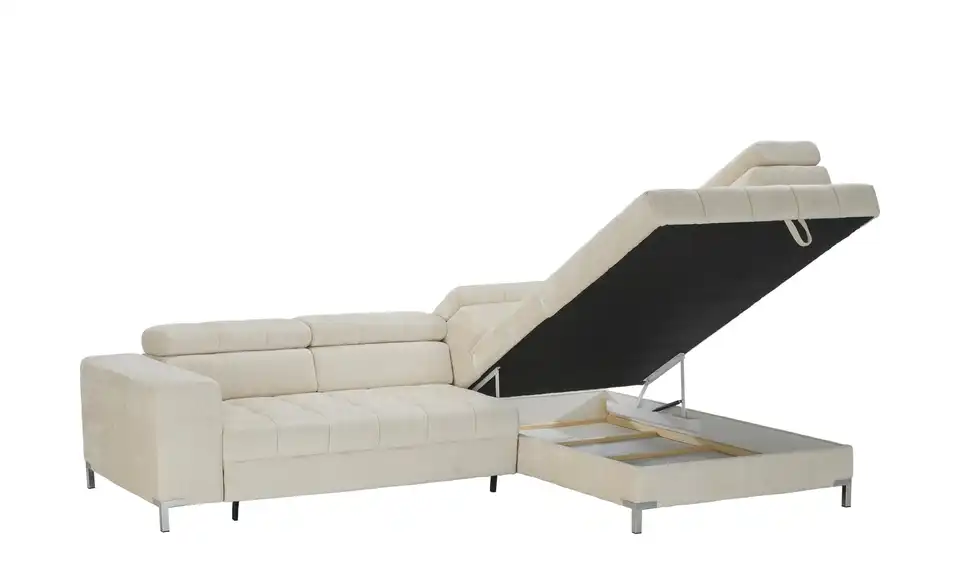 Nach einem anstrengenden Arbeitstag ist das Ecksofa Arte genau der richtige Ort zum Ausspannen. Das Sofa ist aufgrund der Kopfteilverstellung eine absolute Oase der Entspannung, lädt dank des Federkerns sowie der Polsterung aus Schaumstoff zum Relaxen ein und ist frei im Raum platzierbar. Es besitzt ein Gestell, welches aus Metall gefertigt ist. Das Modell Arte bringt einen im Lieferumfang enthaltenen Bettkasten mit, lädt mit der stattlichen Sitztiefe von 62 cm zum Entspannen ein und nimmt insgesamt 284 x 97 x 200 cm ein. Lehnen Sie sich gemütlich zurück und lassen Sie sich von diesem Sofa umschmeicheln.Lieferung & Versand