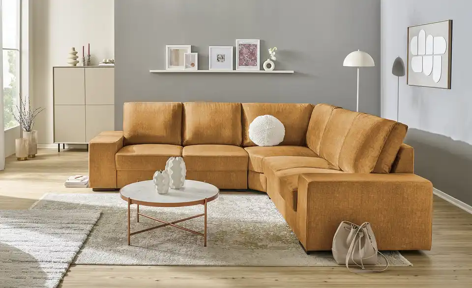 Die allerbesten Voraussetzungen zum komfortablen Sitzen und Ausruhen bietet dieses Ecksofa. Das Modell Renée lässt sich dank des echt bezogenen Rückens frei im Raum platzieren und hat eine bequeme Polsterung aus Schaumstoff für das maximale Wohlfühlerlebnis. Das Gestell aus Massivholz ist die Basis des Sitzmöbels. Das Sofa begeistert mit Rückenkissen als Zubehör. Diese Couch wird ganz schnell zu einer wahren Oase der Gemütlichkeit, welche Ihrem Zuhause auf praktische und attraktive Art und Weise den letzten Schliff verleiht.Lieferung & Versand