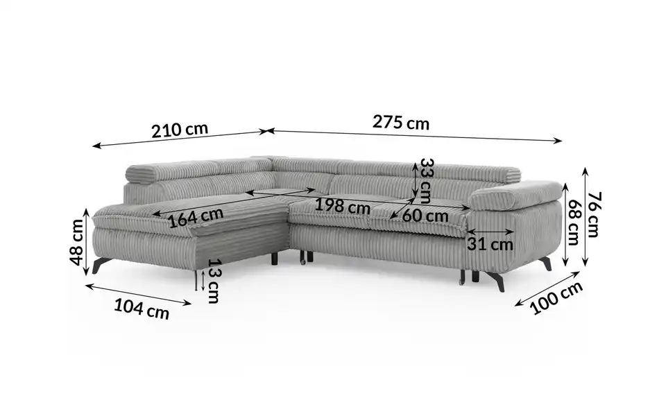 - Lieferumfang / mitgeliefertes Zubehör1 x Ecksofa, Montagematerial