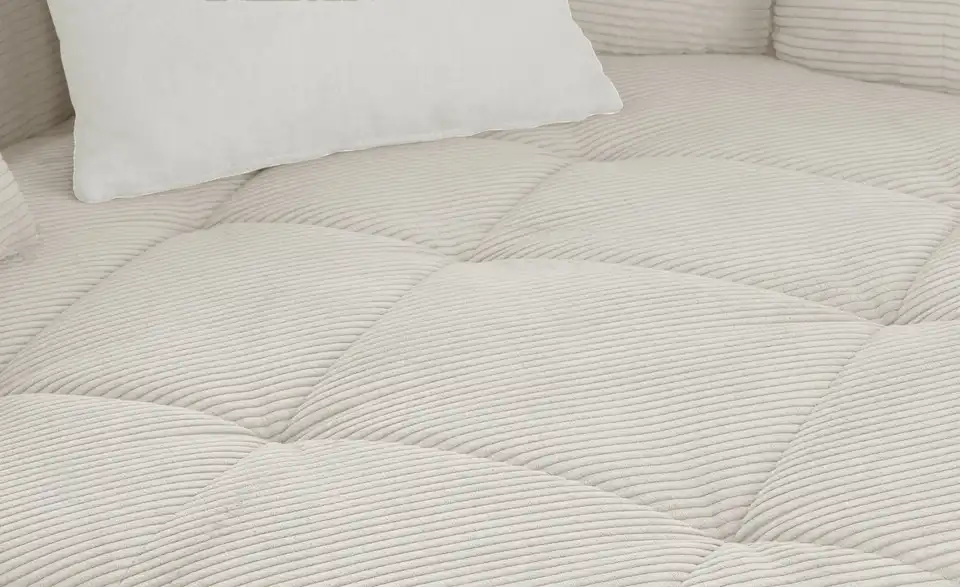 - Materialzusammensetzung TextilBezug Sitz / Rückenlehne Cord:100% PolyesterBezug Korpus Flachgewebe: 98% Polyester, 2% Polyamid