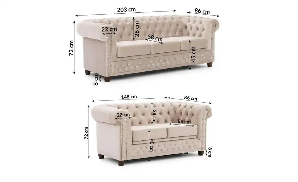 S-STYLE Chesterfield Polstergarnitur 3+2 Cleo Blink