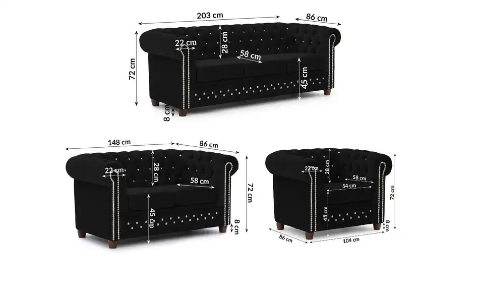 S-STYLE Chesterfield Polstergarnitur 3+2+1 Cleo Blink