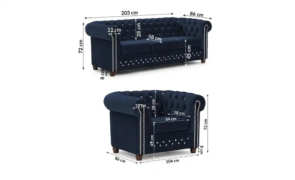 S-STYLE Chesterfield Polestergarnitur 3+1 Cleo Blink