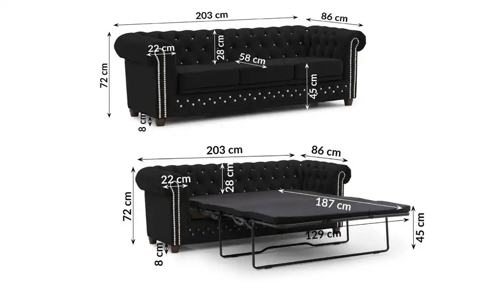 - Lieferumfang / mitgeliefertes Zubehör1 x 3-Sitzer Sofa mit Schlaffunktion