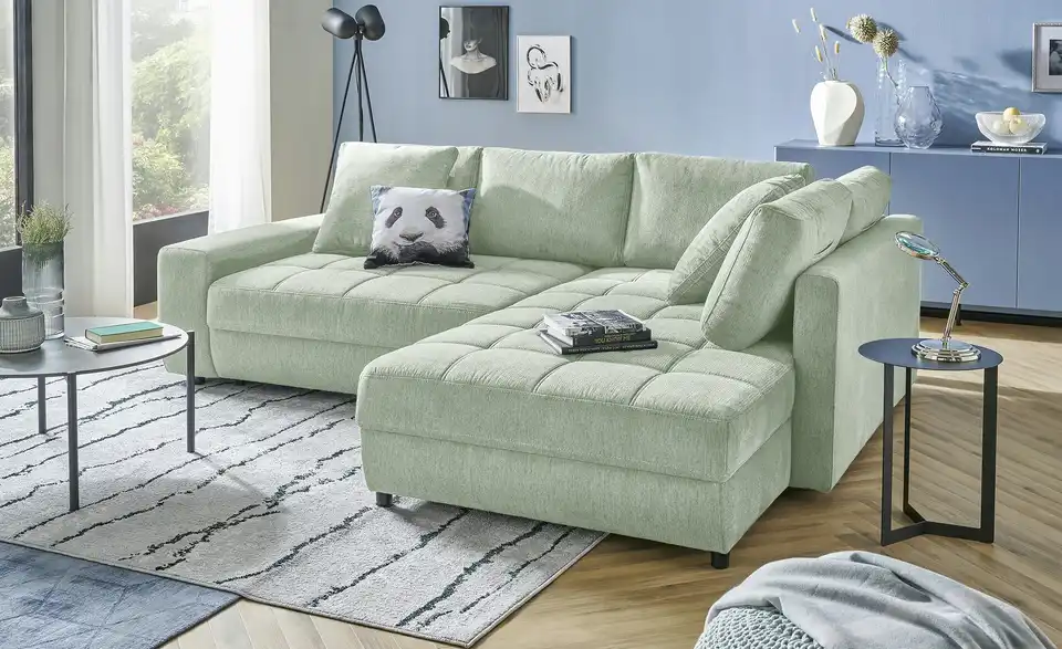 Dieses Ecksofa verbindet modernes Design mit durchdachter Funktionalität. Dank der integrierten Schlaffunktion entsteht im Handumdrehen eine großzügige Liegefläche. Der belüftete Bettkasten bietet praktischen Stauraum, während der mitgelieferte Hygiene-Topper für zusätzlichen Schlafkomfort sorgt. Der pflegeleichte Flachgewebe-Bezug lässt sich meist einfach mit Wasser reinigen und ist ideal für Familien und Haustierbesitzer, da er vor dem Ausfasern durch Tierkrallen schützt und über eine flammhemmende Schutzschicht verfügt. Machen Sie es sich bequem und genießen Sie entspannte Stunden auf dem Ecksofa Arissa de Luxe.Lieferung & Versand