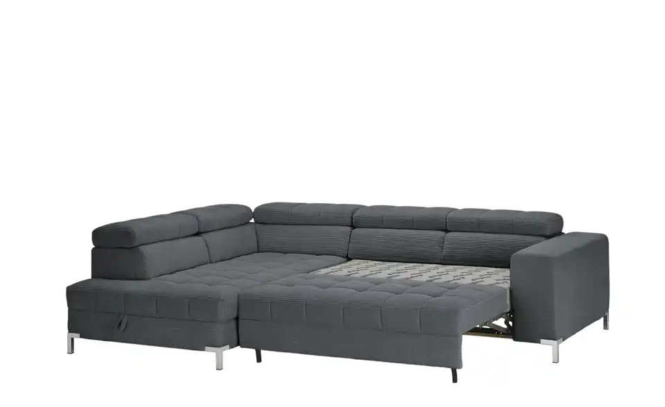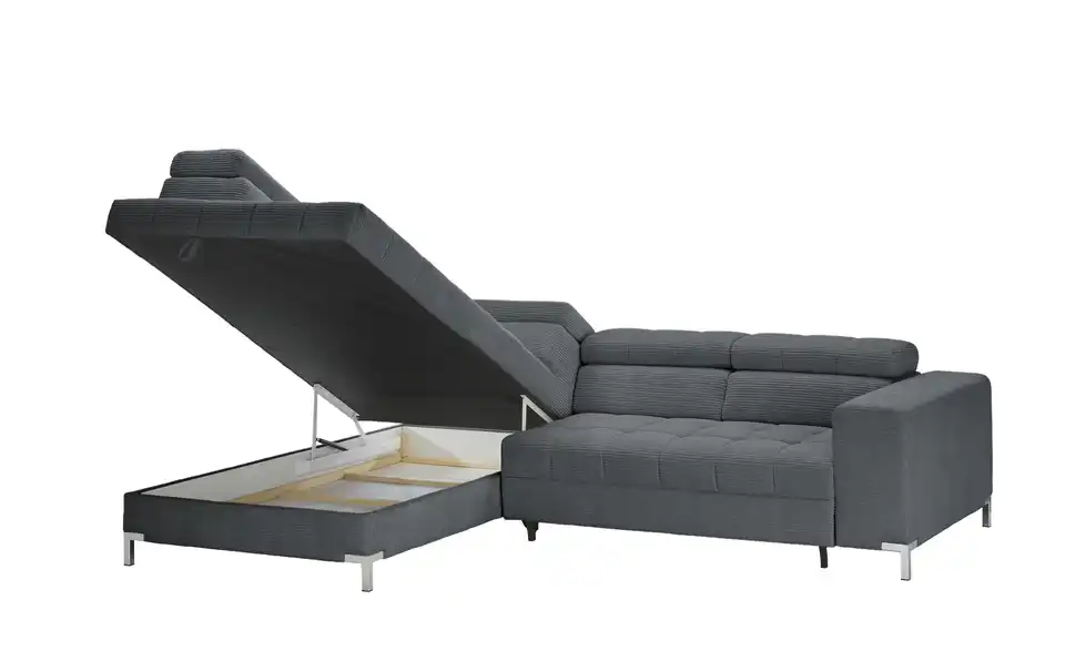 Nach einem anstrengenden Arbeitstag ist das Ecksofa Arte genau der richtige Ort zum Ausspannen. Das Sofa ist aufgrund der Kopfteilverstellung eine absolute Oase der Entspannung, lädt dank des Federkerns sowie der Polsterung aus Schaumstoff zum Relaxen ein und ist frei im Raum platzierbar. Es besitzt ein Gestell, welches aus Metall gefertigt ist. Das Modell Arte bringt einen im Lieferumfang enthaltenen Bettkasten mit, lädt mit der stattlichen Sitztiefe von 62 cm zum Entspannen ein und nimmt insgesamt 284 x 97 x 200 cm ein. Lehnen Sie sich gemütlich zurück und lassen Sie sich von diesem Sofa umschmeicheln.Lieferung & Versand