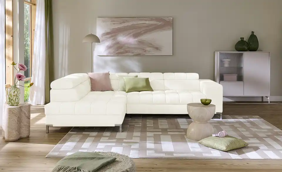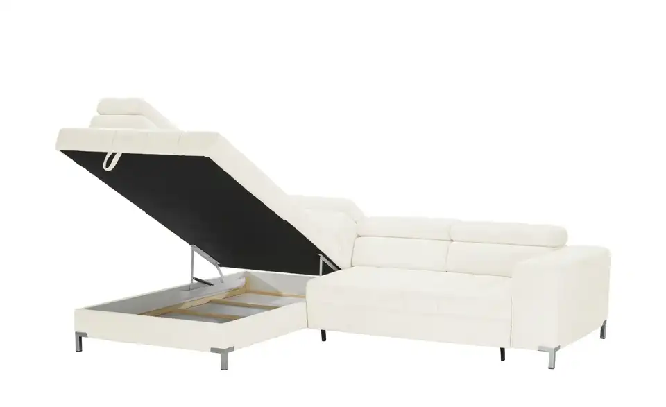 Nach einem anstrengenden Arbeitstag ist das Ecksofa Arte genau der richtige Ort zum Ausspannen. Das Sofa ist aufgrund der Kopfteilverstellung eine absolute Oase der Entspannung, lädt dank des Federkerns sowie der Polsterung aus Schaumstoff zum Relaxen ein und ist frei im Raum platzierbar. Es besitzt ein Gestell, welches aus Metall gefertigt ist. Das Modell Arte bringt einen im Lieferumfang enthaltenen Bettkasten mit, lädt mit der stattlichen Sitztiefe von 62 cm zum Entspannen ein und nimmt insgesamt 284 x 97 x 200 cm ein. Lehnen Sie sich gemütlich zurück und lassen Sie sich von diesem Sofa umschmeicheln.Lieferung & Versand
