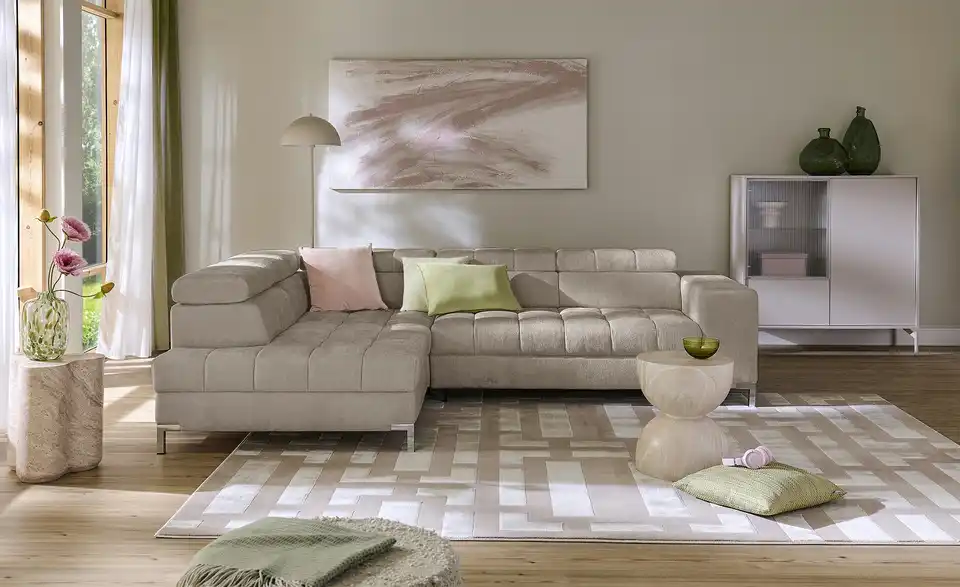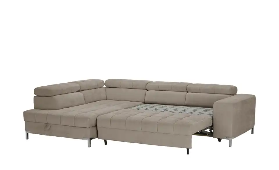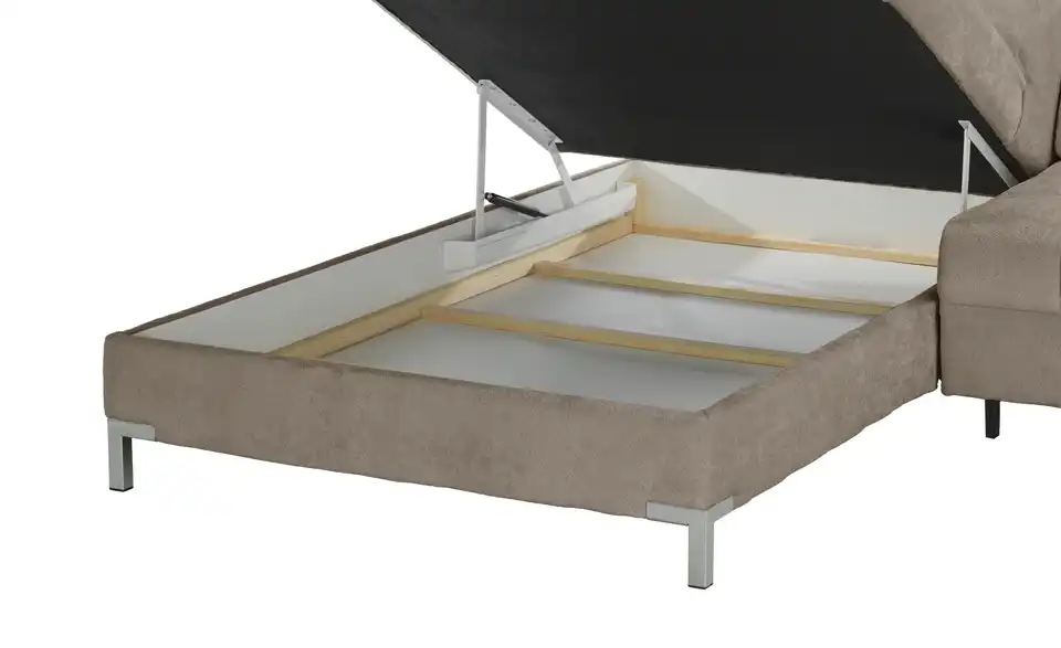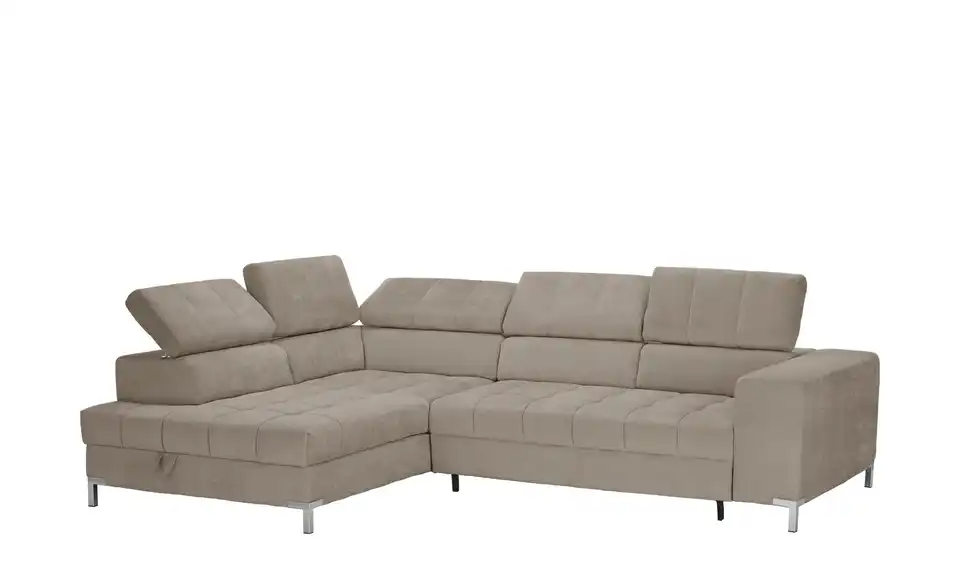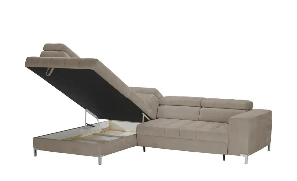Nach einem anstrengenden Arbeitstag ist das Ecksofa Arte genau der richtige Ort zum Ausspannen. Das Sofa ist aufgrund der Kopfteilverstellung eine absolute Oase der Entspannung, lädt dank des Federkerns sowie der Polsterung aus Schaumstoff zum Relaxen ein und ist frei im Raum platzierbar. Es besitzt ein Gestell, welches aus Metall gefertigt ist. Das Modell Arte bringt einen im Lieferumfang enthaltenen Bettkasten mit, lädt mit der stattlichen Sitztiefe von 62 cm zum Entspannen ein und nimmt insgesamt 284 x 97 x 200 cm ein. Lehnen Sie sich gemütlich zurück und lassen Sie sich von diesem Sofa umschmeicheln.Lieferung & Versand