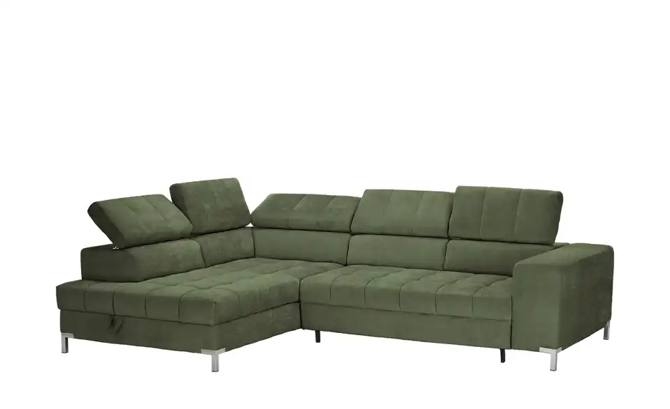 Nach einem anstrengenden Arbeitstag ist das Ecksofa Arte genau der richtige Ort zum Ausspannen. Das Sofa ist aufgrund der Kopfteilverstellung eine absolute Oase der Entspannung, lädt dank des Federkerns sowie der Polsterung aus Schaumstoff zum Relaxen ein und ist frei im Raum platzierbar. Es besitzt ein Gestell, welches aus Metall gefertigt ist. Das Modell Arte bringt einen im Lieferumfang enthaltenen Bettkasten mit, lädt mit der stattlichen Sitztiefe von 62 cm zum Entspannen ein und nimmt insgesamt 284 x 97 x 200 cm ein. Lehnen Sie sich gemütlich zurück und lassen Sie sich von diesem Sofa umschmeicheln.Lieferung & Versand