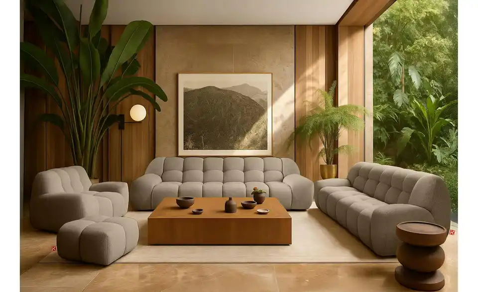 - Lieferumfang / mitgeliefertes Zubehör1x Polsterhocker, 1x Sessel, 1x 2-Sitzer Sofa, 1x 3-Sitzer Sofa
