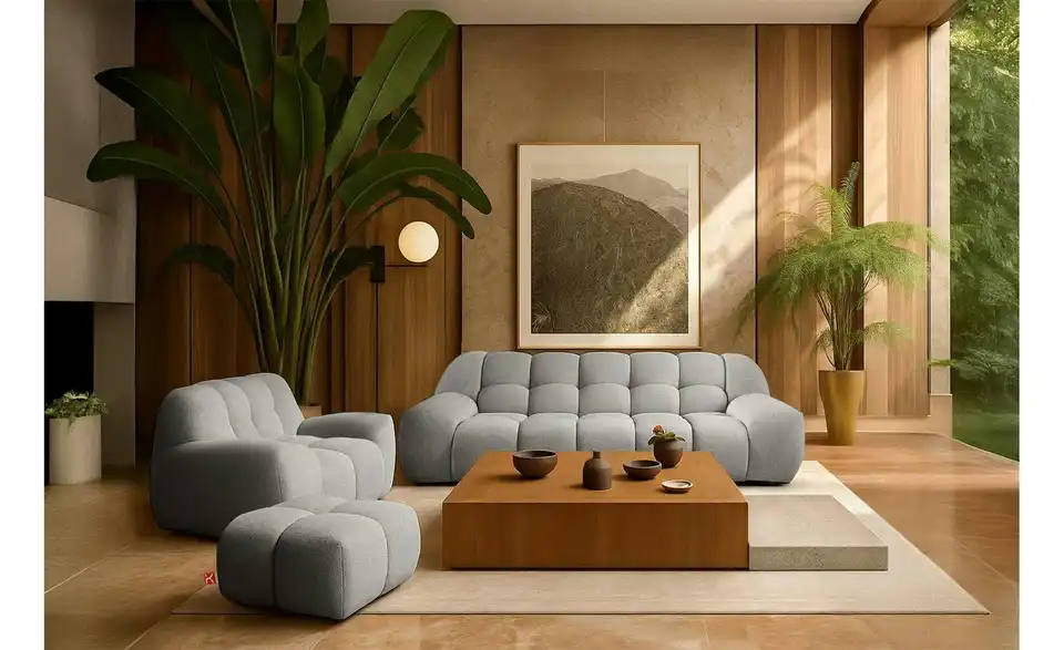 - Lieferumfang / mitgeliefertes Zubehör1x Polsterhocker, 1x Sessel, 1x 2-Sitzer Sofa
