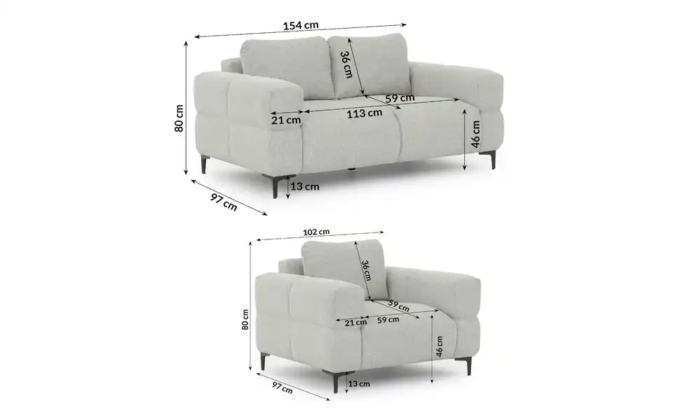 - Mehr zu MaßenSitzbreite - 2-Sitzer 113 cm; Sessel 59 cm