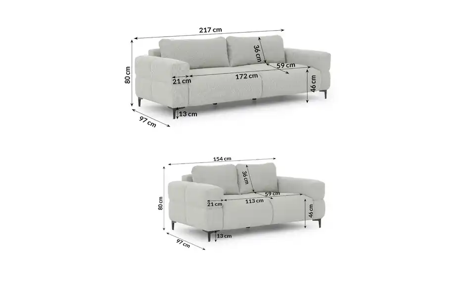 - Mehr zu MaßenSitzbreite - 3-Sitzer 172 cm; 2-Sitzer: 113 cm