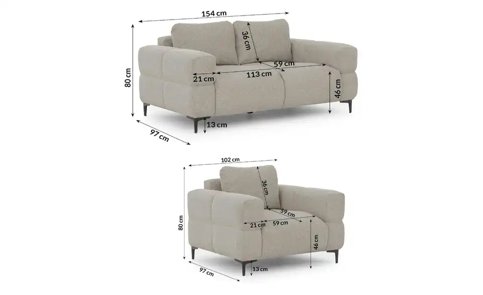 - Mehr zu MaßenSitzbreite - 2-Sitzer 113 cm; Sessel 59 cm