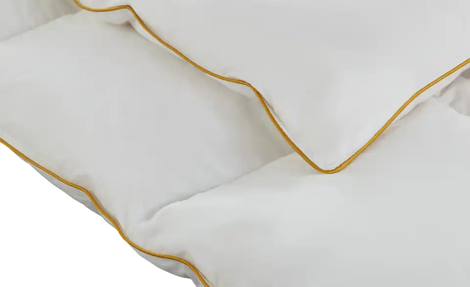- Materialzusammensetzung TextilBezug 100% Baumwolle mit goldener BieseFüllung Gänsedaunen (90%) und -federn (10%)