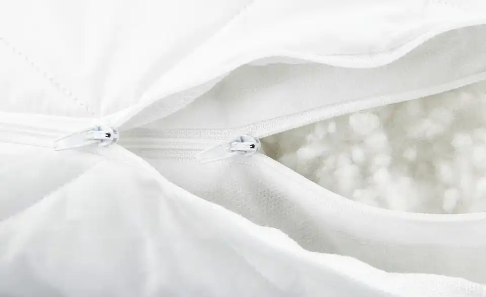 Das Kopfkissen Grönland eignet sich besonders gut für Menschen, die vorwiegend auf dem Rücken schlafen. Das Kissen wird durch seinen Härtegrad der Stufe 3 oft als nicht zu weich und nicht zu hart empfunden. Grund dafür ist die ca. 900 Gramm leichte Faserbällchen-Füllung aus recyceltem Polyester, die in einem separaten Innenkissen zu finden ist. Dieses Innenkissen lässt sich bei Bedarf mit einem Reißverschluss öffnen und kann dann neu befüllt oder nachgefüllt werden. So regulieren Sie die Liegehöhe ganz nach Ihren Wünschen. Für den Kissenbezug wurde Baumwolle verwendet und gänzlich auf optische Aufheller verzichtet. Der hautsympathische Bezug kann bei 60 Grad gewaschen werden und sogar im Trockner bei niedriger Temperatur getrocknet werden. Übrigens: Durch die verwendeten Materialien erfüllt das Kopfkissen Grönland den Oeko-Text Standard 100 und ist damit selbstverständlich gesundheitlich unbedenklich.Lieferung & Versand