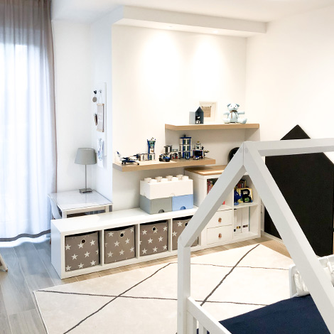 Da es solche individuellen Unikate nicht zu kaufen gibt, stammen diese selbstverständlich allesamt aus Lena’s kreativem Kopf. Von Fernsehwand bis hin zu den Tischen im Büro oder der Garderobe, sind hier fast alle Möbel DIY’s oder Modulmöbel, die entsprechend aufgepeppt wurden. Auch im Kinderzimmer sind jede Menge Möbelstücke zu finden, wie z.B. die Spielküche, der Spielturm, die Tafelwand oder das Regal.