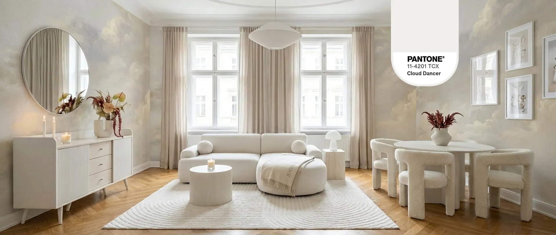 "Cloud Dancer ist mehr als nur ein Off-White – es ist ein zeitloser Ruhepol. Vielseitig, elegant und unglaublich wandelbar bringt die Pantone-Farbe 2026 Harmonie und stilvolle Modernität in jeden Wohnbereich. Eine perfekte Wahl für alle, die ein Zuhause mit Klarheit, Wärme und natürlicher Leichtigkeit gestalten möchten.