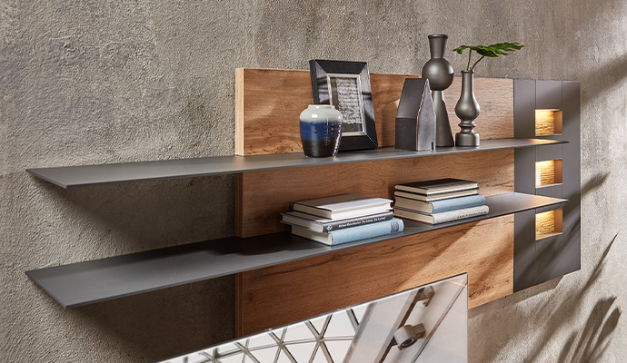 Highlight der Serie ist die flexible Kombinierbarkeit der einzelnen Elemente. So können Sie sich Ihre Wohnkombination oder auch ganze Einrichtung für Wohn- und Esszimmer individuell zusammenstellen. Glasbodenbeleuchtungen, Unterbau-Spots und weiteres Beleuchtungszubehör – dank einer Funkfernbedienung kinderleicht bedienbar – setzen Light Line 10 gekonnt in Szene.