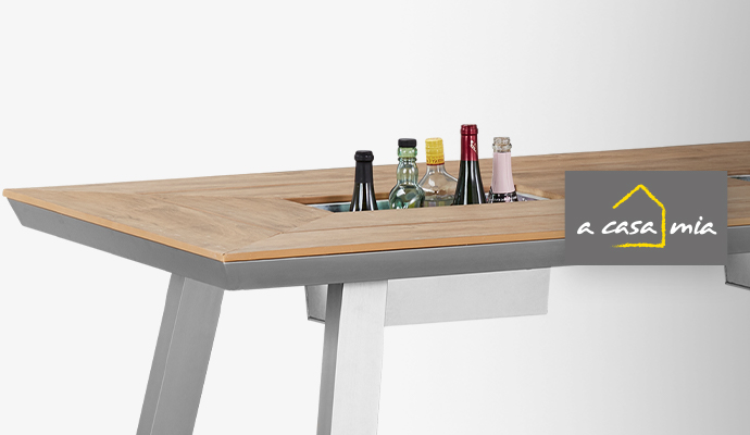 - Tischplatte mit Einsätzen für Getränke & Co.
