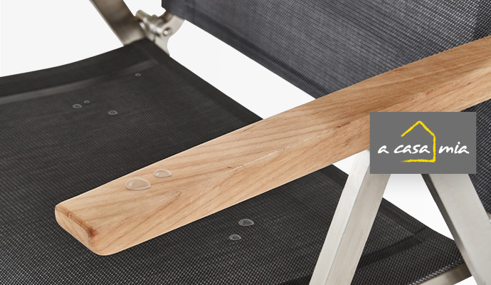 Die Kombination aus Edelstahl und Teakholz verleiht den Möbeln eine moderne Note und einen wertigen Look. Die Rückenlehne der Sonnenliege hat eine vierstufige Verstell-Funktion und lässt sich so optimal für Ihre Bedürfnisse anpassen.