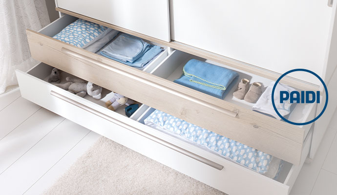 Mithilfe des Wickelaufsatzes wird die Kommode Carlo zur Wickelkommode. Da dieser sich auch wieder problemlos entfernen lässt, können Sie die Kommode auch nach dem Windelalter weiternutzen. Vielseitigen Stauraum bieten die Schränke und Regale der Serie. Alle sind mit einer Soft-Close-Funktion an Türen und Schubladen ausgestattet – und schließen daher extra leise.