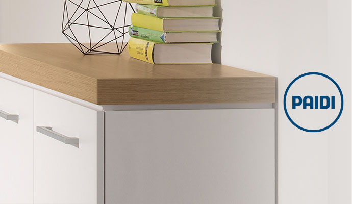 Modernes Design, langlebige Qualität und raffinierte Funktionen: Mit der Möbelserie Kira hat die Marke PAIDI die perfekte Einrichtung für das Kinder- und Jugendzimmer kreiert. Die Möbel sind kreideweiß und wahlweise mit Akzenten in Eiche-Nautik (Nachbildung) oder Eiche-Nebraska (Nachbildung) erhältlich. Eine spezielle Beschichtung aus Melaminharz macht die Oberflächen unempfindlich für Kratzer und leicht zu pflegen.