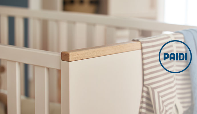 Eine sichere, zertifizierte Qualität, schicke Optik und durchdachte Funktionen – das ist das Programm Stiene von der bekannten Marke PAIDI. Stiene umfasst vielseitige Babymöbel in Cashmere, einem hellen Beige, das mit natürlichen Akzenten aus Eiche bzw. in Eichenholz-Optik kontrastiert wird. Front und Korpus der Möbel sind innen und außen mit einem speziellen Melaminharz beschichtet.
