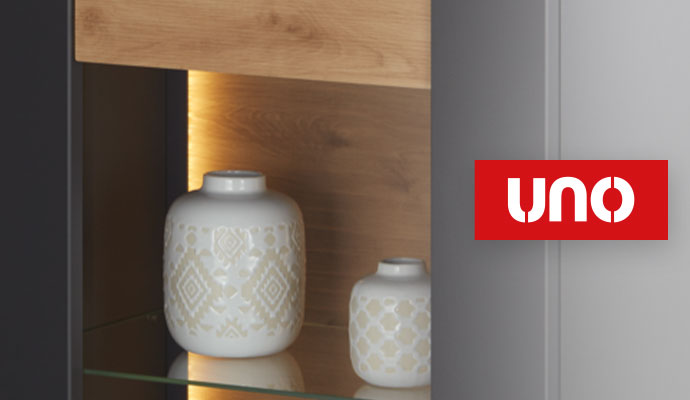 Dass dunkle Farben und natürlich wirkende Holzoptiken ein tolles Dreamteam für die Einrichtung sind, das beweist die Serie Titan 24 von der Marke uno. Die Wohnzimmermöbel sind in Anthrazit und Eiche Artisan (Nachbildung) designt, wobei die anthrazitfarbigen Flächen über ein schickes mattes Oberflächenfinish verfügen. Besonderer Eyecatcher sind die geschroppten Frontabsetzungen, die durch die LED-Spots markant in Szene gesetzt werden.
