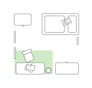 Soll der Teppich unter dem Schreibtisch liegen, dann empfiehlt sich ein Teppich, der 70 cm tiefer ist, als der Tisch. So hat Ihr Kind beim Zurückschieben des Stuhls ausreichend Platz.