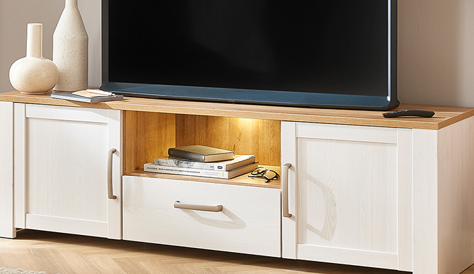 Im Ensemble wirkt Toneo besonders harmonisch. Als Einzelstück setzt die Möbelserie schöne Akzente, ohne auffällig zu sein. Für Modelle mit offenen Fächern oder Glastüren erhalten Sie bei uns auch die passende Beleuchtung. Diese setzt nicht nur Ihre Deko in Szene, sondern sorgt auch für eine angenehme Lichtstimmung.
