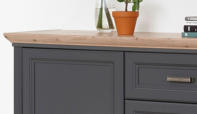 Mit den Landhaus-Möbeln Varese zaubern Sie ein elegantes und gemütliches Flair. Die Serie ist in zwei Farbvarianten erhältlich: Pinie hell (Nachbildung) oder Graphitgrau mit Akzenten in Asteichenoptik. Varese überzeugt in allen Räumen seiner detailverliebten Optik, tollen Extras und Qualität. Stellen Sie sich aus der großen Varese Auswahl Ihre Lieblingskombination zusammen. Alle Artikel passen wunderbar zueinander.