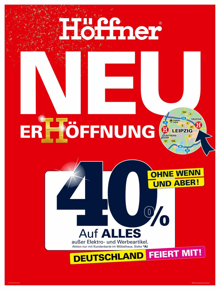 Auch Produkte aus dem Höffner Prospekt finden Sie auf dieser Übersichtsseite zum besonders günstigen Preis. Denn: Alle Artikel die in den Möbel Prospekten reduziert sind, können Sie in den Einrichtungshäusern und auch hier im Onlineshop zum reduzierten Preis erwerben. Vom Sessel mit passendem Hocker über den Esszimmerstuhl bis hin zum kompletten Schlafzimmer, ist in der Werbung von Höffner immer wieder eine Auswahl fantastischer Schnäppchen enthalten, bei denen es sich lohnt, sofort zuzuschlagen. Blättern Sie im digitalen Möbel Prospekt oder stöbern Sie im Abschnitt Höffner Werbung hier auf der Seite durch die entsprechenden Werbe-Kategorien, wie zum Beispiel „Wohnen“, mit rabattierten Kommoden, Highboards & Couchtisch-Modellen oder „Speisen“ mit beispielsweise Essgruppen, Tischen und Sitzbank-Angeboten zum kleinen Preis.